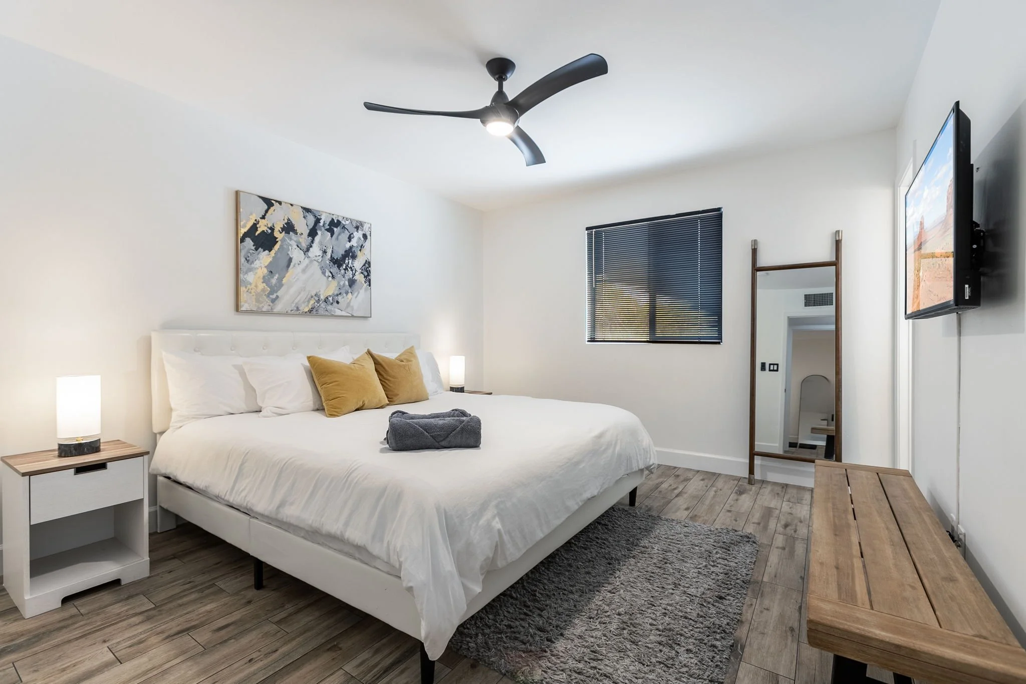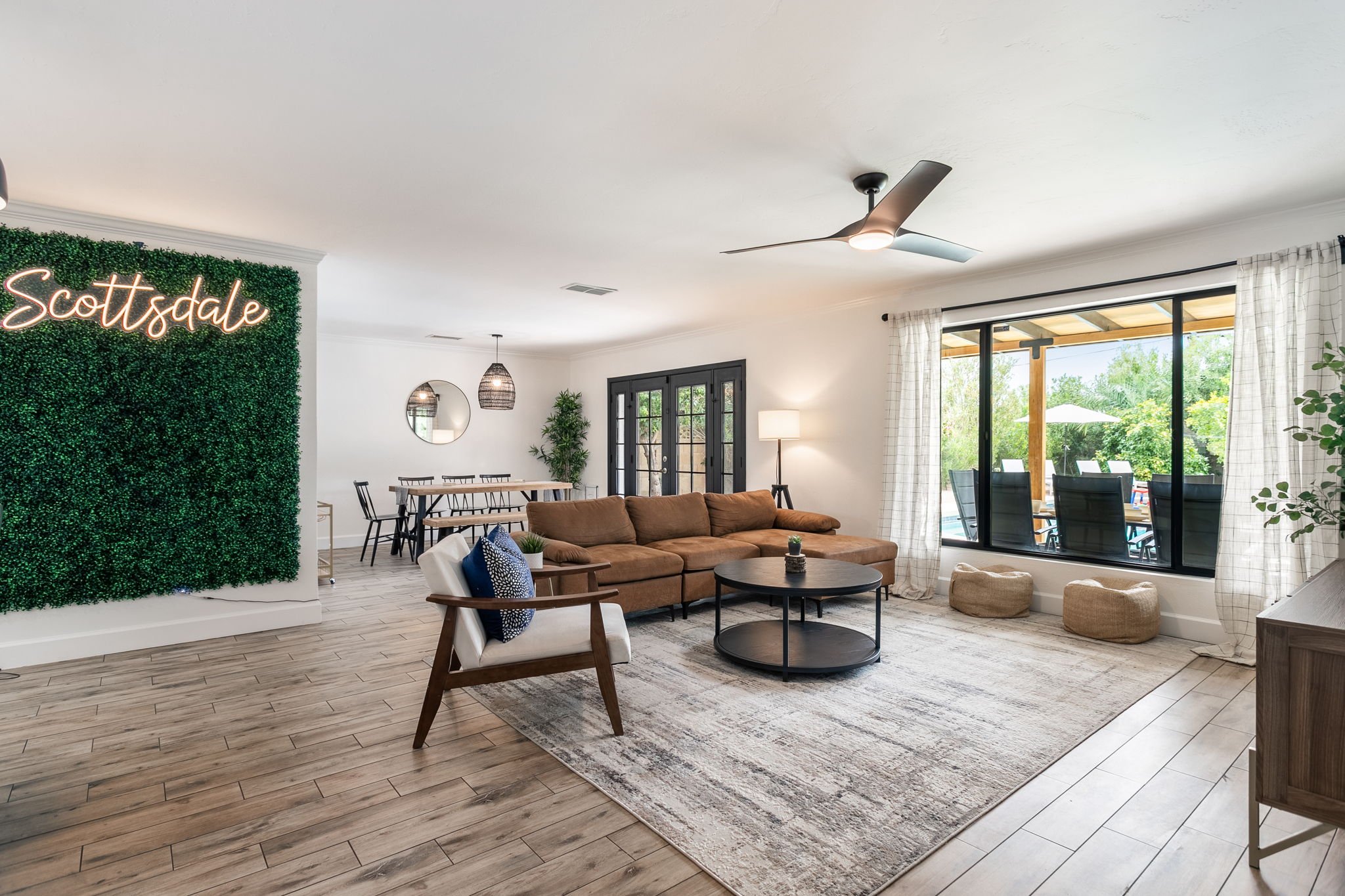 Stay Snuze Casa Pine:Old Town Scottsdale book here Old Town Scottsdale - 3 Bed 2 Bath - Sleeps 6 Salt water pool - Pool Loungers - Fire Pit - Outdoor Games - BBQ - Outdoor Dining Fully Stocked Kitchen - Coffee Included with Each Stay Free Wifi - Smart TVs - AC - Scottsdale Wall with Ring Light Primary Bedroom - Pack n Play Crib - Smart TV - Closet - Ceiling Fan Bedroom - Closet - Ceiling Fan - Extra Linens Bedroom - Closet - Ceiling Fan - Extra Linens Primary Bathroom - Shower - Fully Stocked - Hair Dryer Bathroom - Shower & Bath - Fully Stocked Book Old Town Scottsdale Stay Here!